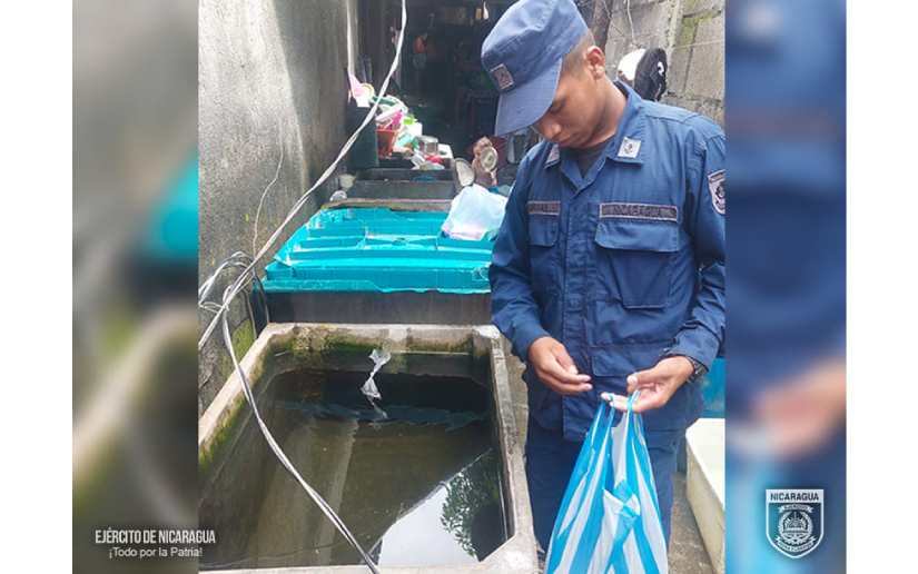 El Ejército de Nicaragua consecuente con el lema de que “Somos el Pueblo mismo uniformado trabajando en su propio beneficio”, el 22 de octubre de 2024, a través del Distrito Naval Pacífico, en coordinación con el Ministerio de Salud (MINSA), participó en jornada de abatización en la comunidad de Masachapa, municipio de San Rafael del Sur, departamento de Managua, con el objetivo de eliminar criaderos de mosquito transmisores del dengue y otras enfermedades.