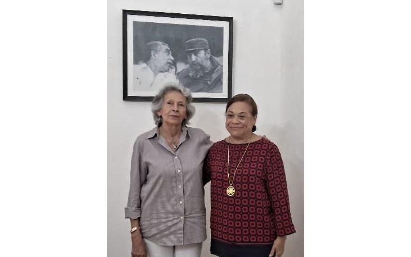 Durante la visita a la casa de la Fundación, llena de historia y la mágica presencia de sus fundadores, nuestra Embajadora, Compañera Guisell Morales Echaverry, intercambió con la Directora General de la Fundación, la poeta, documentalista, productora de cine, Fundadora del Fondo Cubano de Bienes Culturales y Orden por la Cultura Nacional de Cuba, Alquimia Peña, quien también es Miembro del Consejo Rector de la Escuela Internacional de Cine y Televisión de San Antonio de los Baños, y de la Junta Directiva de la Federación Caribeña de Cine y Video, explorando oportunidades que fortalezcan las excelentes relaciones de cooperación existentes entre la Fundación y las Instituciones Culturales, Creativas y Cinematográficas de Nicaragua y con profesionales del séptimo arte de nuestro País.