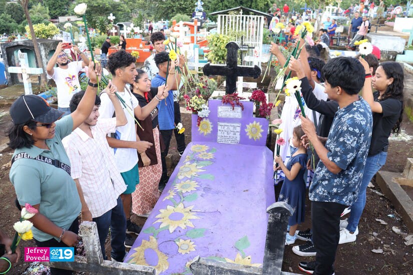 La Juventud Sandinista 19 de Julio llevó flores al compañero Thomas Padilla, Elmer Morales, Félix Morales, quienes descansan en el cementerio Sierra Maestra, en Managua.