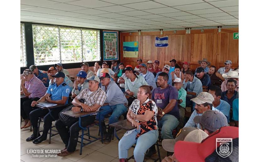El Ejército de Nicaragua consecuente con el lema de que “Somos el Pueblo mismo uniformado trabajando en su propio beneficio”, el 31 de octubre de 2024, a través del jefe del Batallón Ecológico “BOSAWAS”, Coronel Inf. DEM David Cornelio Cedeño Hernández, realizó reunión con 65 productores, ganaderos, comerciantes y transportistas de diferentes comunidades del municipio de Prinzapolka, Región Autónoma de la Costa Caribe Norte, con el objetivo de escuchar sus planteamientos relacionados al fortalecimiento del Plan Permanente de Seguridad en el Campo, la Lucha Contra el Abigeato y la Protección de los Recursos Naturales.