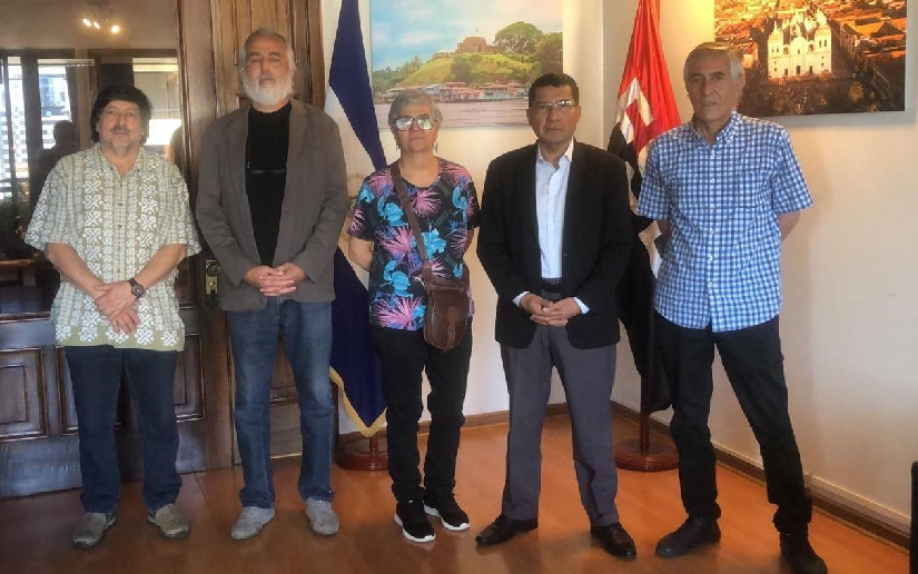 La Embajada de Nicaragua en Chile, recibió la cordial visita del Compañero Marco Riquelme, Dirigente del Movimiento Patriótico Manuel Rodríguez, MPMR. Se hizo acompañar de otros dirigentes del Movimiento : Owama Madera, activista y promotora de Derechos Humanos y Género; Julián Valdés y Danilo Rojas, activistas e internacionalistas. El MPMR, es un movimiento político y social chileno de izquierda. Asimismo, los Compañeros forman parte de “Casa Bolívar” de Chile, que es un centro social, político y cultural que promueve la hermandad Nuestramericana, mediante eventos, charlas, paneles, entre otros.