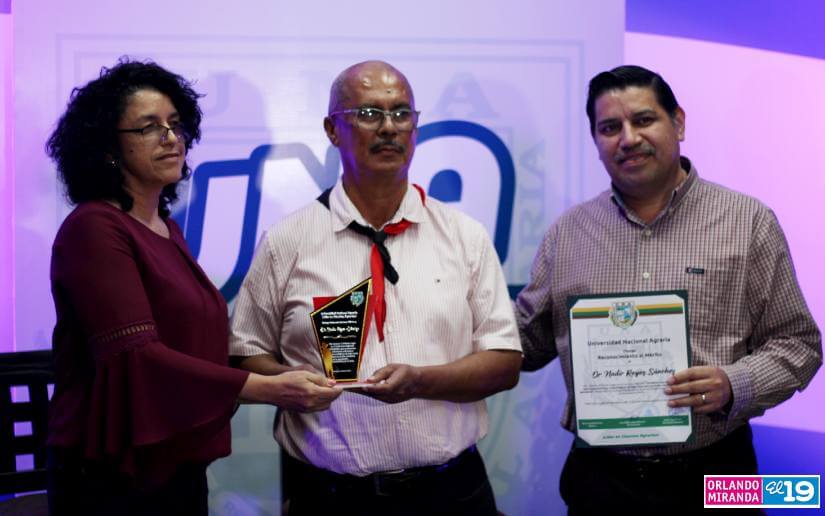 La Universidad Nacional Agraria (UNA) hizo un reconocimiento a un docente de esa alma mater por haber obtenido el primer lugar en el Concurso de Soluciones de Bajo Costo para la Acción Climática en la Ganadería. Se trata del doctor Nadir Reyes Sánchez, con 38 años de trabajo en el área de investigación.