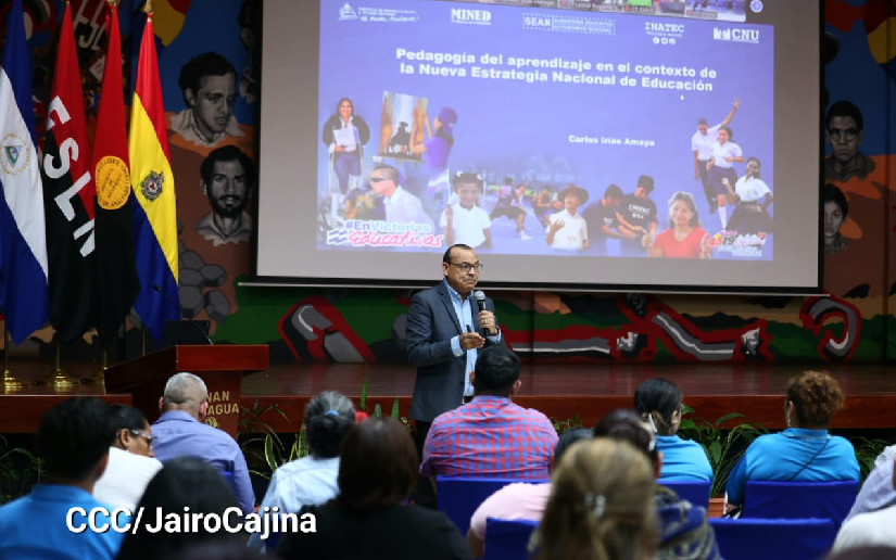 Como parte de la Estrategia Nacional de Educación "Bendiciones y Victorias", en el auditorio Fernando Gordillo de la UNAN-Managua, se realizó la Conferencia Magistral "Pedagogía del Aprendizaje", impartida por el doctor Carlos Irías Amaya, Rector de la Universidad Internacional Antonio de Valdivieso (UNIAV).