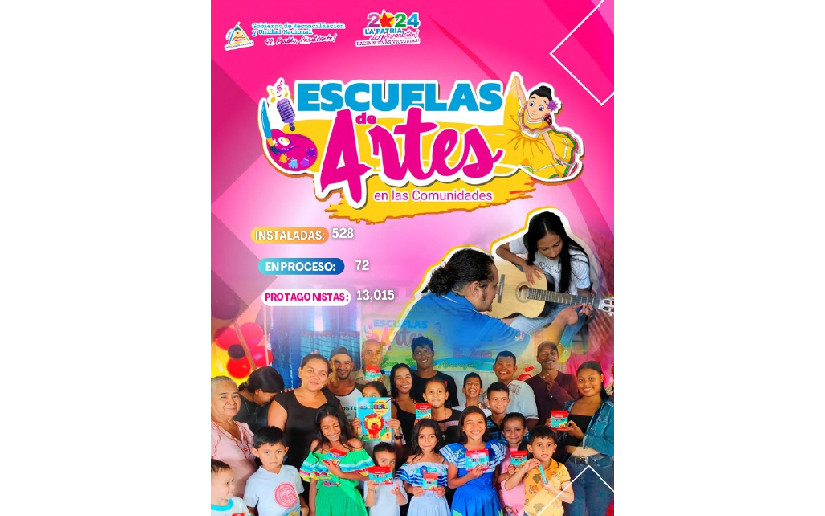 Este Fin de Semana, se instalarán Escuelas de Artes en 30 Comunidades más, de los Municipios de: Acoyapa, Comalapa, Dipilto, El Rama, El Tortuguero, Jinotega, Matagalpa, Morrito, Potosí, Quilalí, Río Blanco, San Isidro, San Juan de Nicaragua, Somoto y San Lucas.