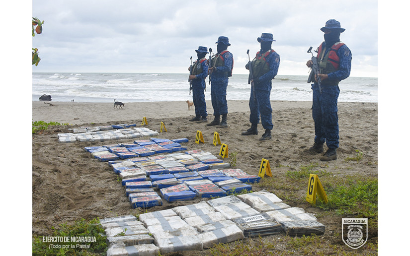 El Ejército de Nicaragua consecuente con el lema de que “Somos el Pueblo mismo uniformado trabajando en su propio beneficio”, en cumplimiento a la estrategia de Estado “Muro de contención”, el 17 de noviembre de 2024, a través de servicio operativo del Segundo Batallón de Tropas Navales “Sub Comandante Mario José Alemán Escobar”, de la Fuerza Naval, en el sector de Las Breñas, a 8 kilómetros al sur de Masachapa, municipio de San Rafael del Sur, departamento de Managua, realizó la incautación de 3 bultos, los que contenían en su interior 151 paquetes rectangulares de cocaína, que eran trasladados por elementos, los que al detectar la presencia de la tropa se dieron a la fuga dejando la droga abandonada.