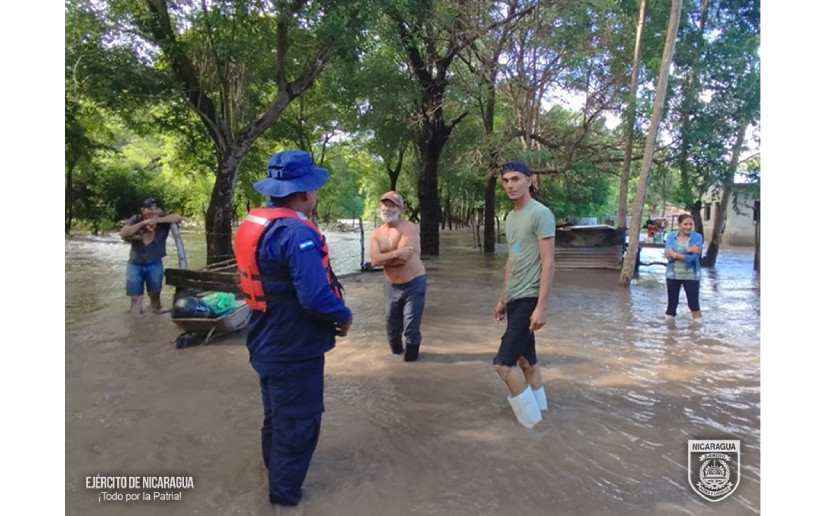 El Ejército de Nicaragua consecuente con el lema de que “Somos el Pueblo mismo uniformado trabajando en su propio beneficio”, del 16 al 18 de noviembre de 2024, a través del Destacamento Naval de Aguas Interiores “Comandante Hilario Sánchez Vásquez” de la Fuerza Naval, en coordinación con autoridades municipales, realizaron la evacuación de 82 personas entre ellas 15 menores de edad, de las comunidades El Menco, municipio de Buenos Aires, departamento de Rivas y Teonoste, municipio de San Francisco Libre, departamento de Managua, esto debido a las inundaciones ocasionadas por el desplazamiento de la tormenta tropical “Sara”.