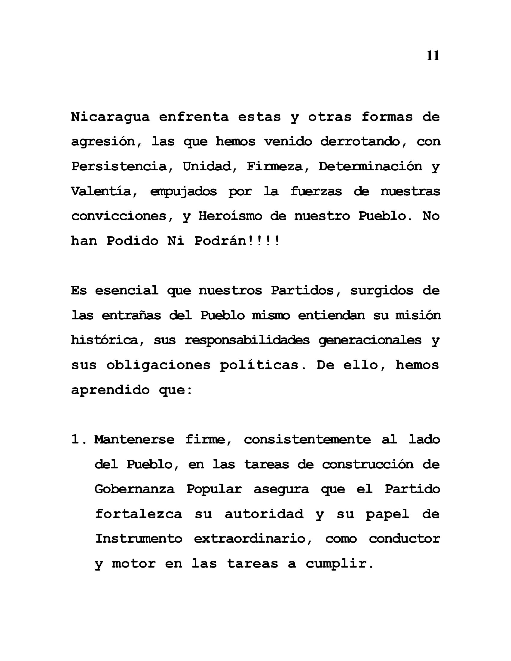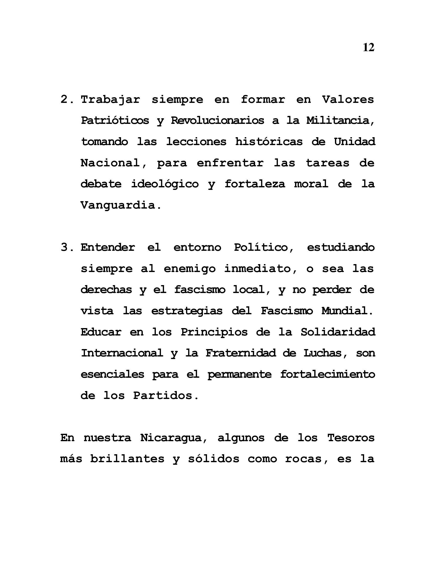 In our Nicaragua, some of the most brilliant and rock-solid treasures are UNITY, Support for the People and Confidence in strategic victory.