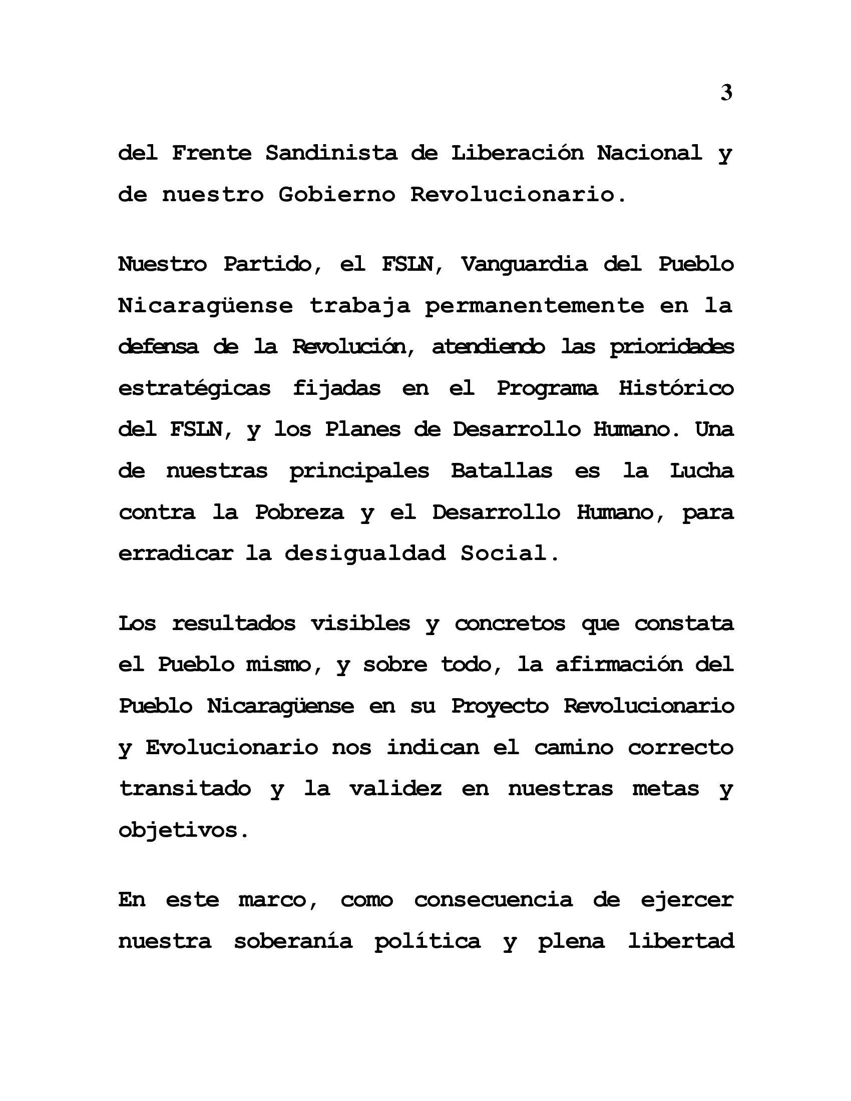 Los resultados visibles y concretos que constata el Pueblo mismo, y sobre todo, la afirmación del Pueblo Nicaragüense en su Proyecto Revolucionario y Evolucionario nos indican el camino correcto transitado y la validez en nuestras metas y objetivos.