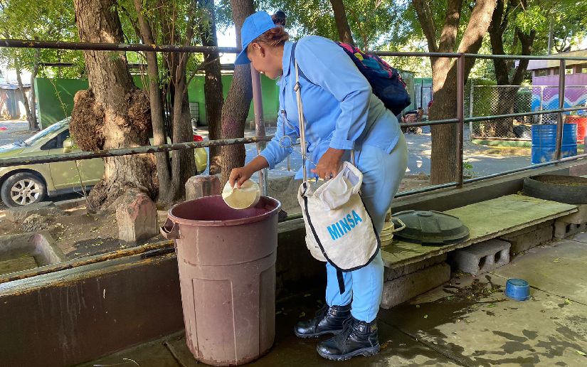 Abatización, destrucción de criaderos y el mensaje de tomar conciencia sobre la gravedad del dengue fueron parte de las acciones llevadas por brigadistas del Ministerio de Salud este viernes a la Colonia Centroamérica, en el distrito V de Managua, para seguir manteniendo a raya las epidemias en la capital.