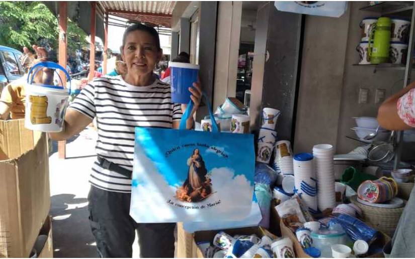 Allison Padilla Sánchez, de Variedades Padilla ubicada de la Iglesia El Calvario dos cuadras arriba en el mercado Oriental, dijo que tiene una variedad de productos plásticos, de metal y juguetes, para celebrar la Purísima.