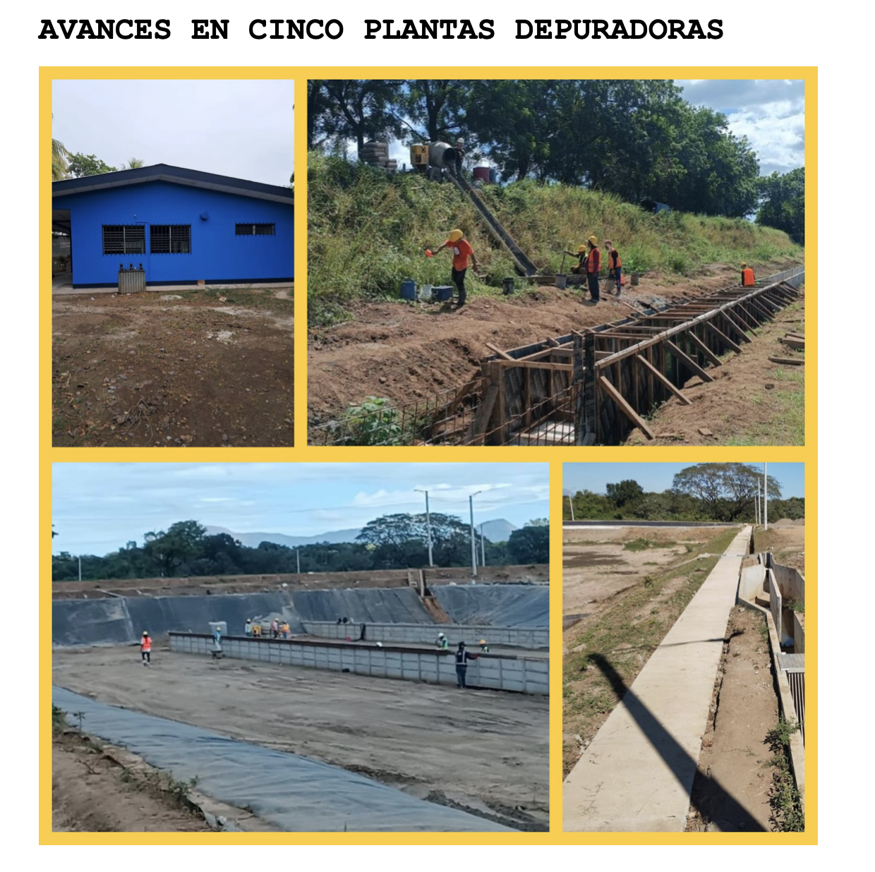 Con financiamiento de Nuestro Buen Gobierno y el BCIE, se ejecuta el Proyecto de Ampliación y Mejoramiento del Saneamiento en la Ciudad de León que incluye cinco Plantas Depuradoras nuevas o rehabilitadas con un avance del 90% en sus obras físicas.