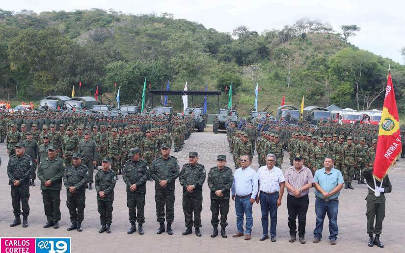"Los miembros del Ejército de Nicaragua ratificamos nuestro firme e indisoluble compromiso de tener patria para siempre, patria con soberanía, con independencia, con autodeterminación nacional, con integridad territorial, patria con seguridad, con estabilidad, con tranquilidad y, por supuesto, una patria con paz", resaltó.