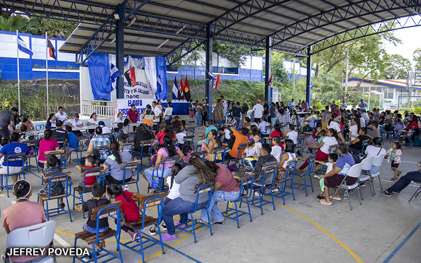 El centro educativo Barrilete de Colores, ubicado en el distrito III de Managua, entregó el Bono Presidencial Escolar a los niños y niñas de preescolar, primero y segundo grado de primaria.