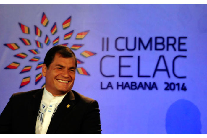 En su intervención en la II Cumbre de Jefes de Estado de la Comunidad de Estados Latinoamericanos y Caribeños (CELAC), el mandatario ecuatoriano pidió que “que nadie se engañe, que el hoy mediático es el mas fuerte del mundo y mantiene medios, relatorías y Ongs, bajo el simpático principio de que pueden mentir y hostigar a los gobiernos progresistas”.