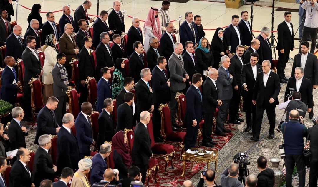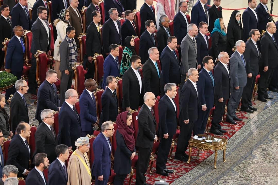 El Presidente Masoud Pezeshkian agradeció la presencia de los Embajadores y Organismos Internacionales presentes y reiteró la importancia del fortalecimiento de nuestras relaciones. Recordó al Líder Histórico de la Revolución Islámica, Imam Jomeini, quien lideró el Triunfo de la Revolución Islámica.