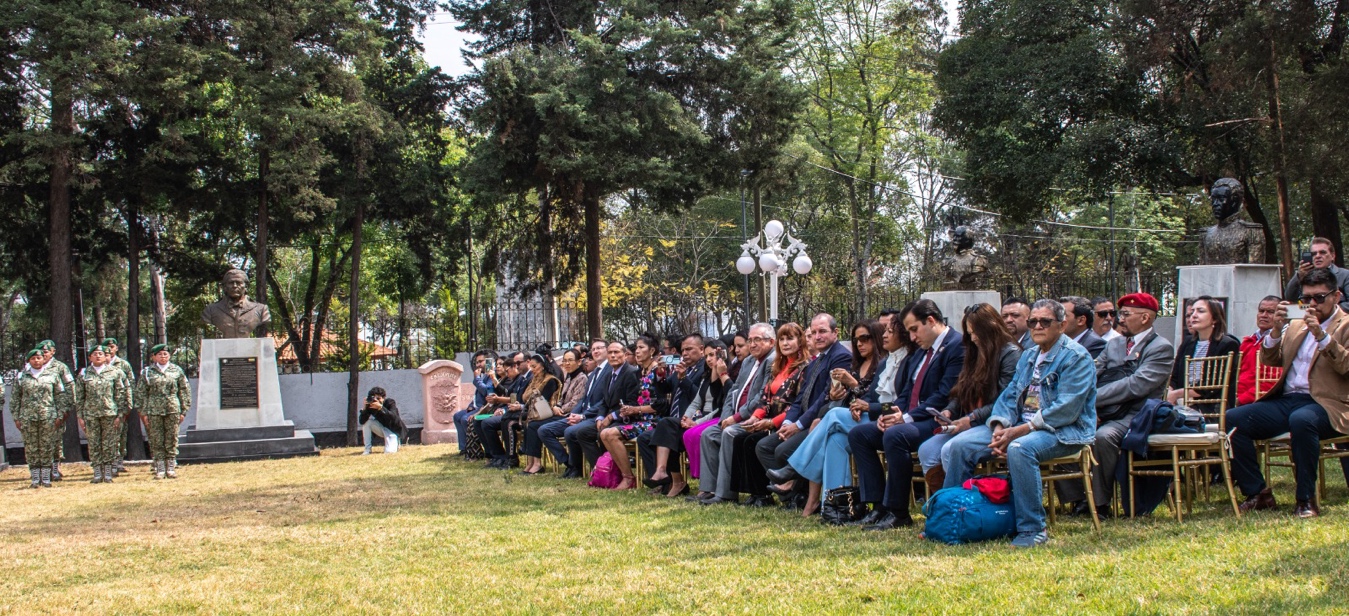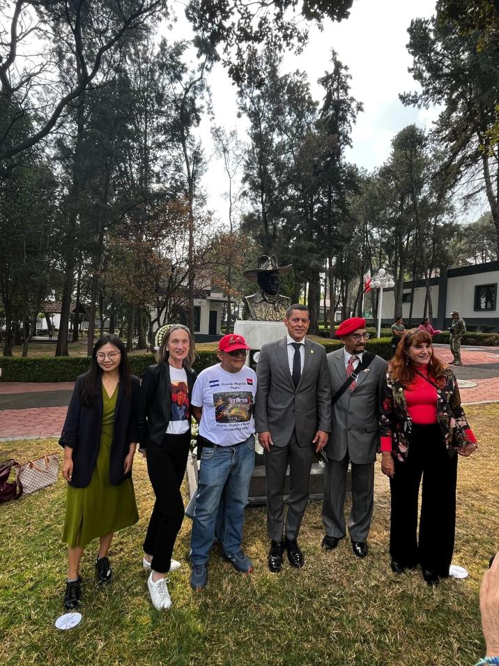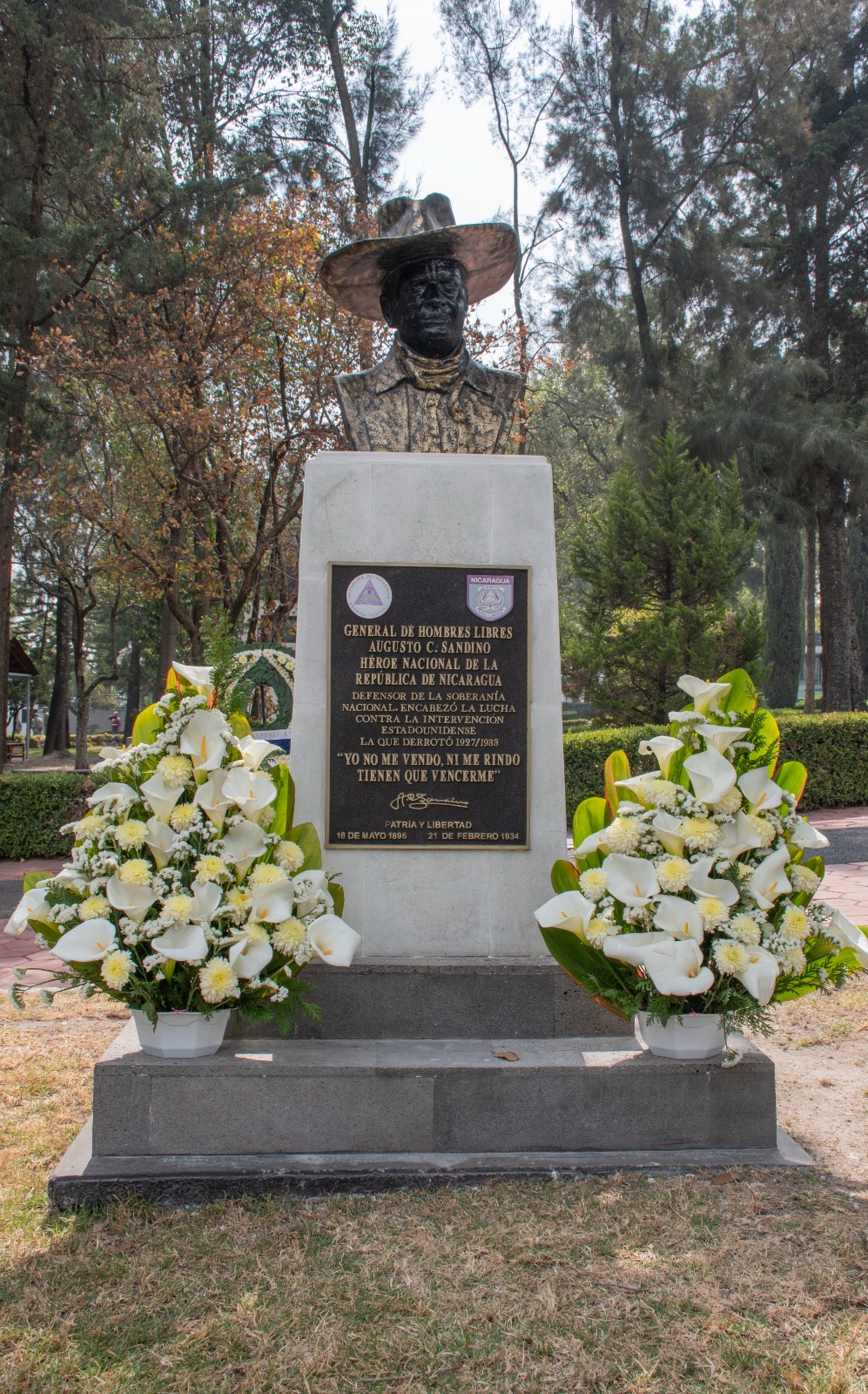 Miembros del Cuerpo Diplomático, Representantes de Organismos Internacionales acreditados en México e Invitados Especiales, colocaron una ofrenda floral en el Busto del General Augusto C. Sandino. A la vez, Representantes de la Organización Mundial por la Paz (WOFP), llevaron arreglos florales al General Sandino.