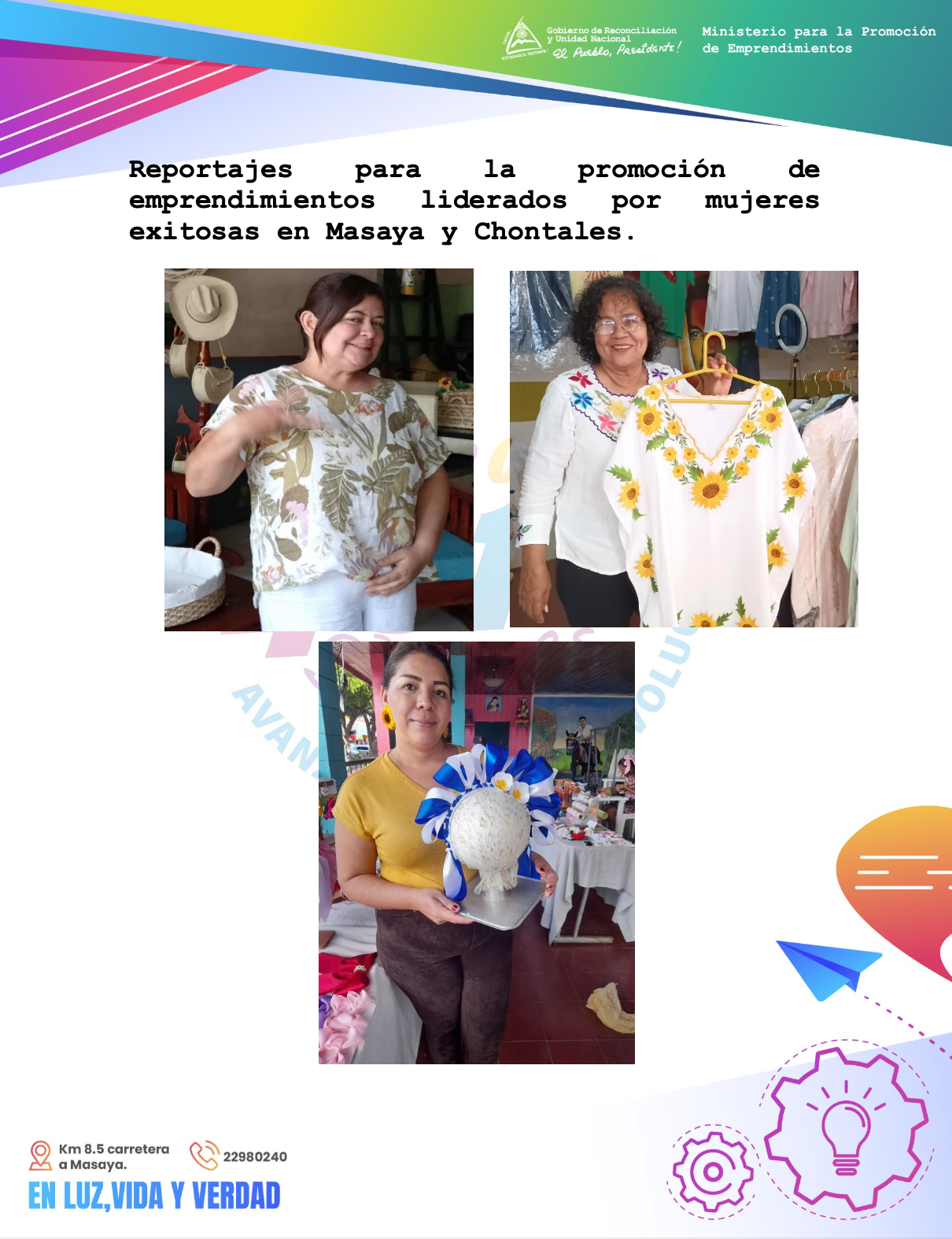 4. Reportajes para la promoción de emprendimientos liderados por mujeres exitosas en Masaya y Chontales.