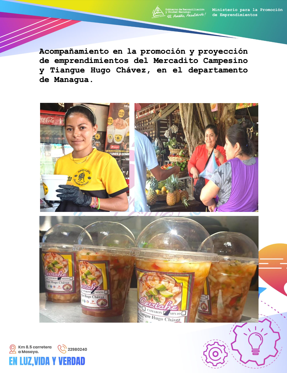 2. Acompañamiento en la promoción y proyección de emprendimientos del Mercadito Campesino y Tiangue Hugo Chávez, en el departamento de Managua.