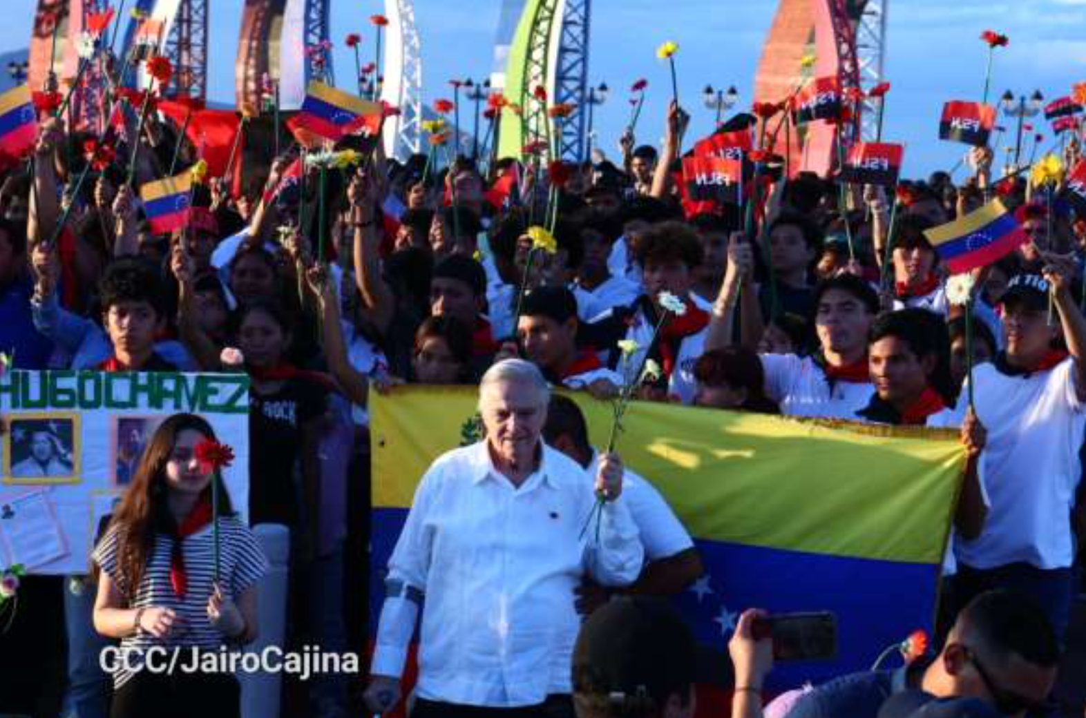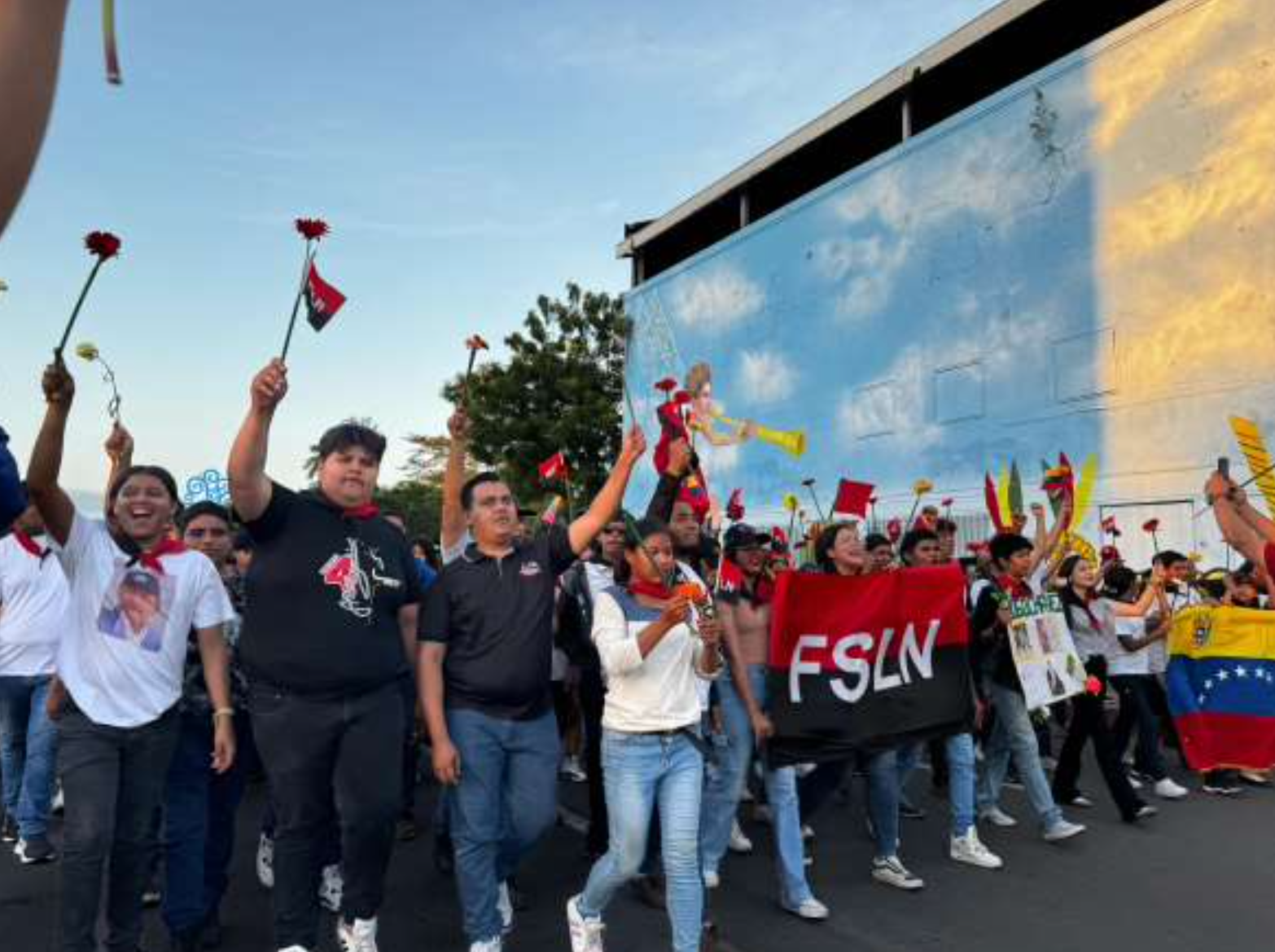De igual forma, esta caminata culminó con entrega de flores acompañadas de palabras por parte de compañeros de Juventud Sandinista y de la Embajada de Venezuela, acompañados de canciones representativas de la Unidad y amor Revolucionario.