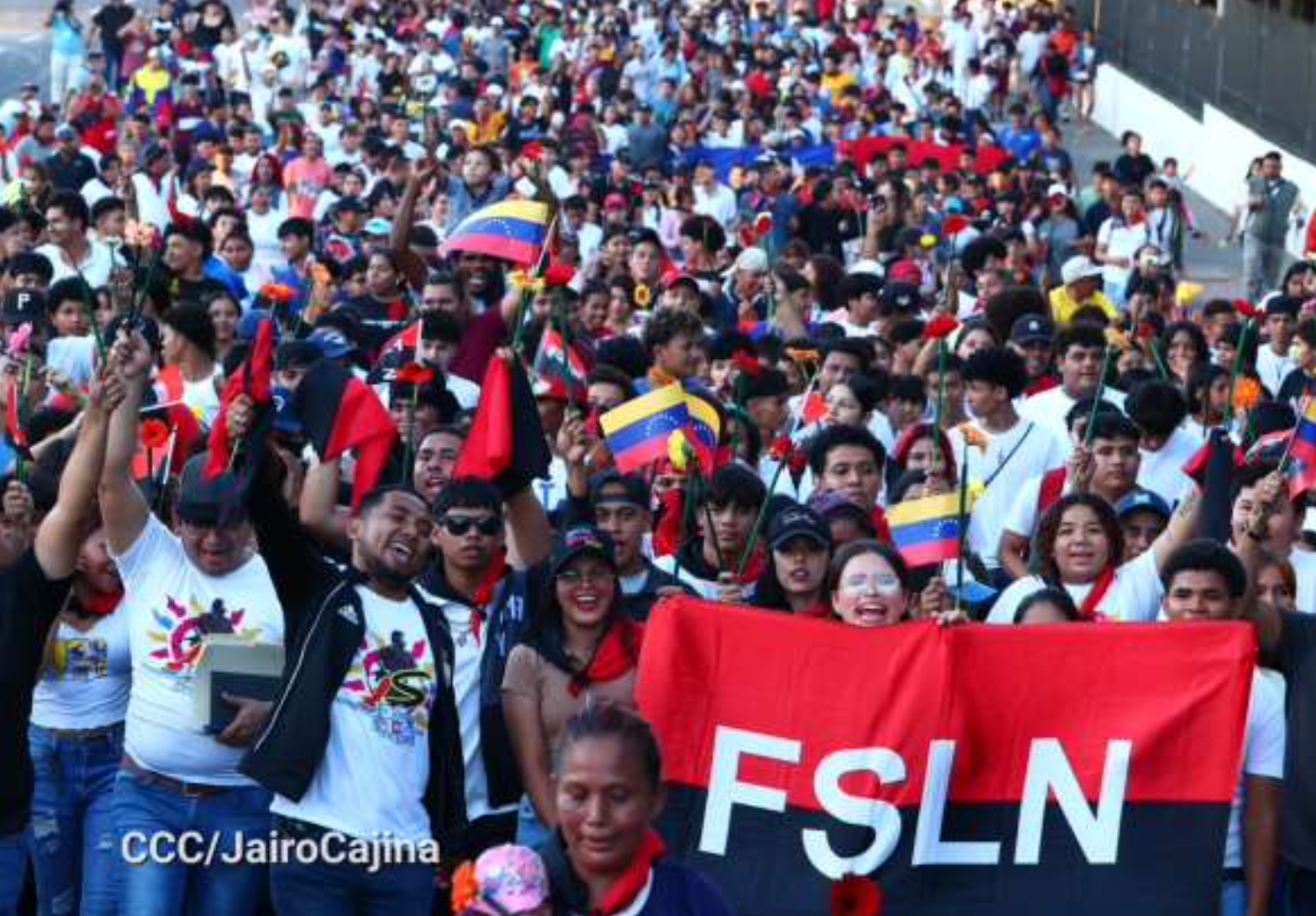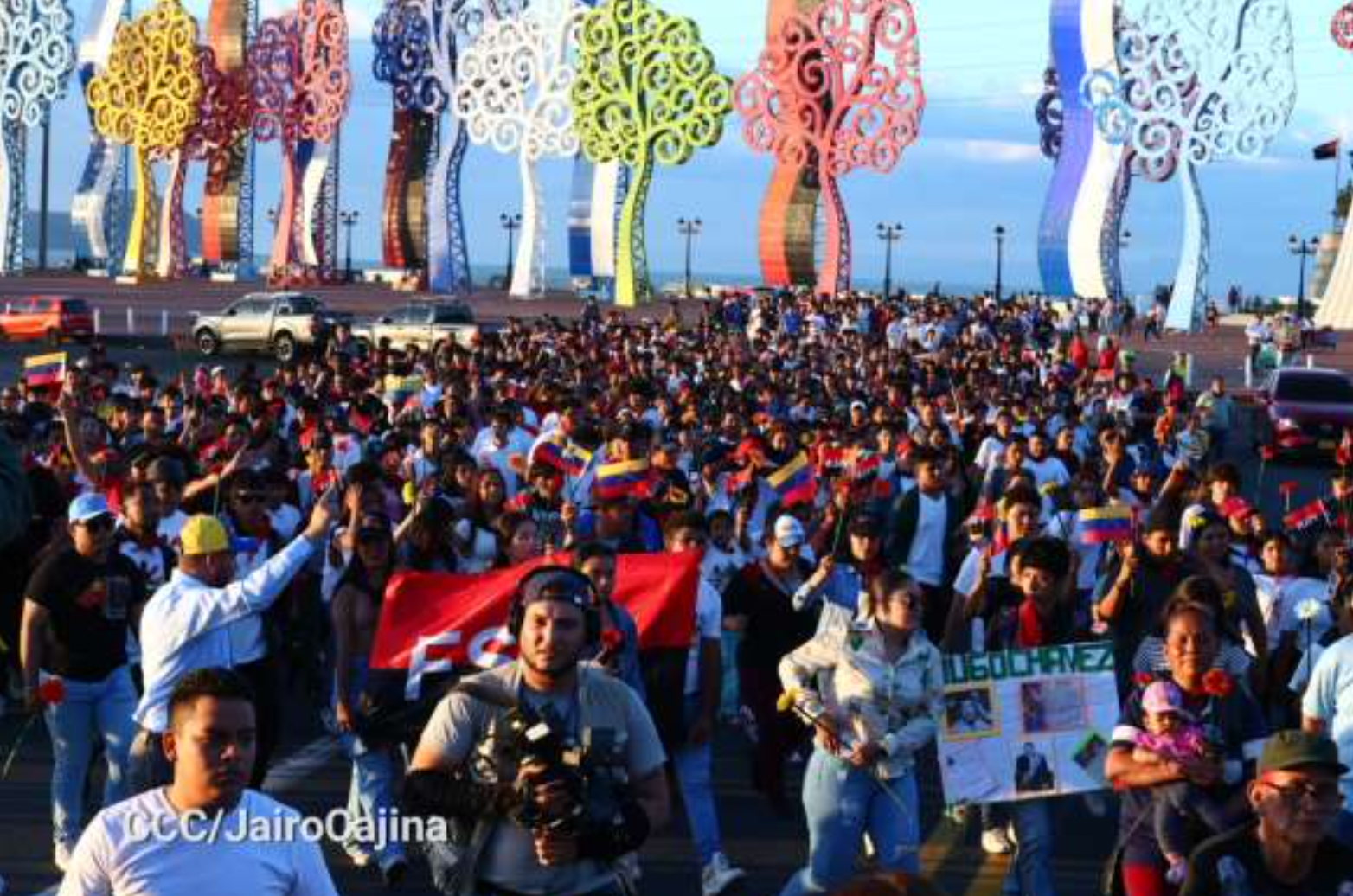 Esta caminata se realizó Saliendo del Monumento a Simón Bolívar hacia la Rotonda Hugo Chávez, donde participaron compañeros de Juventud Sandinista en Managua, miembros del Consejo Nacional de Juventud, Jóvenes Líderes Universitarios y compañeros de la Embajada de Venezuela, quienes portaron banderas de Nicaragua, de Venezuela y roja y negra.