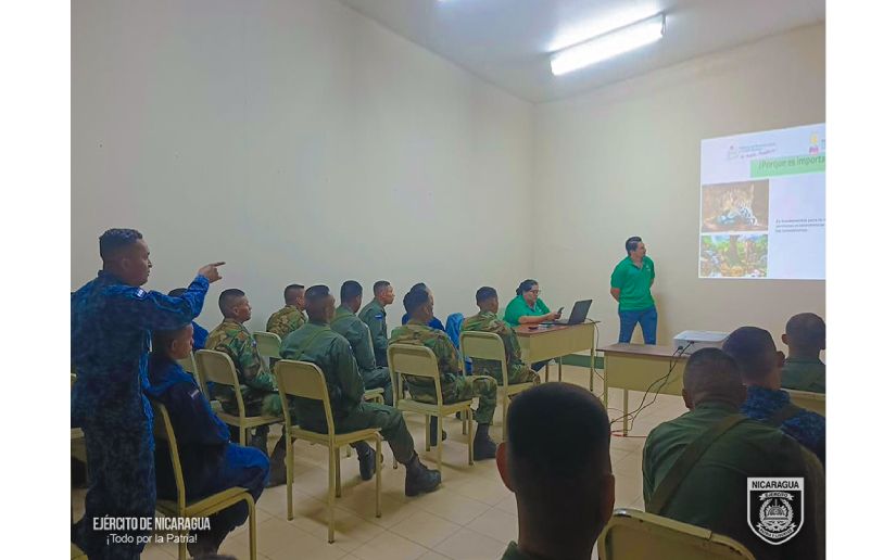 El Ejército de Nicaragua consecuente con el lema de que “Somos el Pueblo mismo uniformado, trabajando en su propio beneficio”, el 29 y 30 de abril de 2025, en la Escuela Nacional de Sargentos “Sargento Andrés Castro” (ENSAC), en coordinación con el Ministerio del Ambiente y de los Recursos Naturales (MARENA), participó en capacitación en “Materia de Permisología, Registro y Trazabilidad Forestal”, con el objetivo de fortalecer la actuación en función de la protección, conservación y restauración de los recursos naturales.