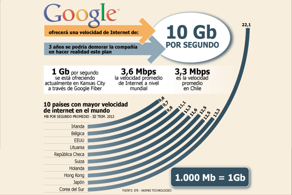 Hace más de un año que Google está consiguiendo un avance significativo en EEUU, específicamente en Kansas City, con velocidad de 1 GB por segundo para Internet, en un proyecto que conocido como Google Fiber.