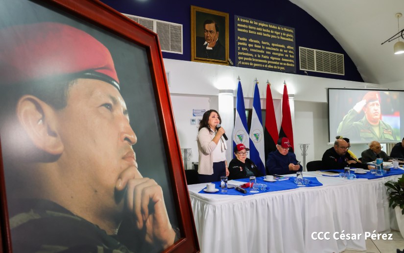 "Este encuentro lo dedicamos al Comandante Eterno, al amigo entrañable de Nicaragua, al Comandante Hugo Chávez Frías. Tu pueblo socialista sigue avanzando, ayer ganó 55 alcaldías de tu país, arrasando con las elecciones, ganando en 23 de las 24 cabeceras estatales de Venezuela. Tu juventud ha votado por los proyectos, avanzando con la democracia directa, la democracia comunitaria, el socialismo avanza en América, en Venezuela, en Nicaragua, en Cuba y en el mundo. Comandante, hoy te decimos; seguimos cumpliendo, seguimos avanzando", expresó el diputado Edwin Castro, jefe de la bancada sandinista.