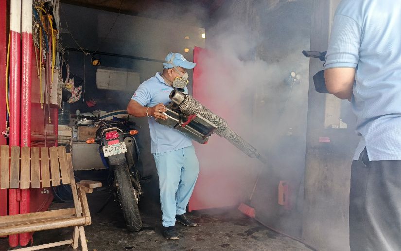Este jueves se ejecutaron acciones como destrucción de criaderos de zancudos, aplicación de abate en pilas y barriles, además se fumigó para controlar el mosquito que anda volando en el ambiente.