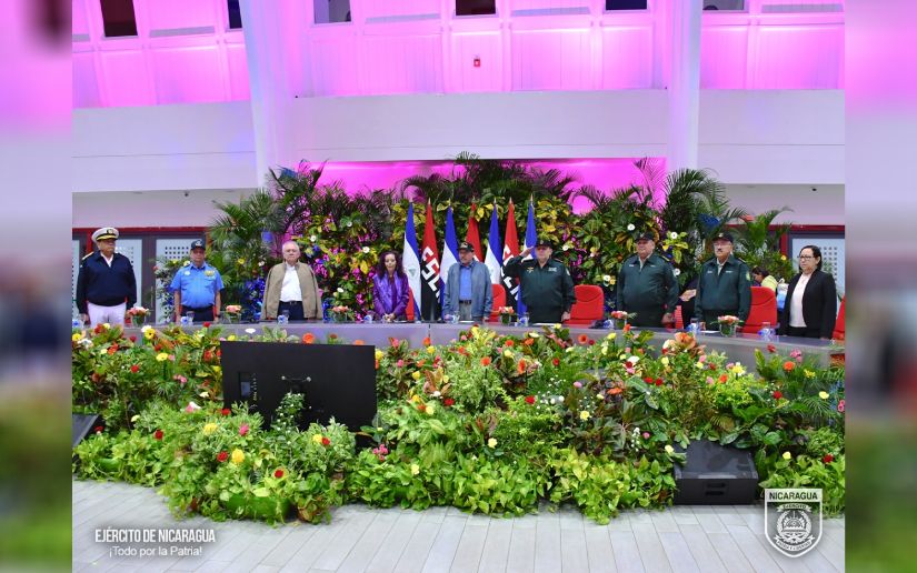 El Ejército de Nicaragua consecuente con el lema de que “Somos el Pueblo mismo uniformado trabajando en su propio beneficio”, el 13 de agosto de 2025, en el Centro de Convenciones ‘‘Olof Palme’’, realizó acto en conmemoración del 45 aniversario de fundación de la Fuerza Naval, presidido por la Presidencia de la República y Jefatura Suprema del Ejército de Nicaragua; Co-Presidente Comandante Daniel Ortega Saavedra y Co-Presidenta Compañera Rosario Murillo Zambrana; el Comandante en Jefe de las Fuerzas Militares del Ejército de Nicaragua, General de Ejército Julio César Avilés Castillo; el Presidente de la Asamblea Nacional, doctor Gustavo Porras Cortés; el Jefe del Estado Mayor General, Coronel General Bayardo Ramón Rodríguez Ruiz; el Inspector General, Coronel General Marvin Elías Corrales Rodríguez; la Ministra de Defensa de la República de Nicaragua, licenciada Rosa Adelina Barahona Castro; el Jefe de las Fuerzas Policiales de la República de Nicaragua, Primer Comisionado Francisco Javier Díaz Madriz y el jefe de la Fuerza Naval, Contralmirante Ángel Eugenio Fonseca Donaire.