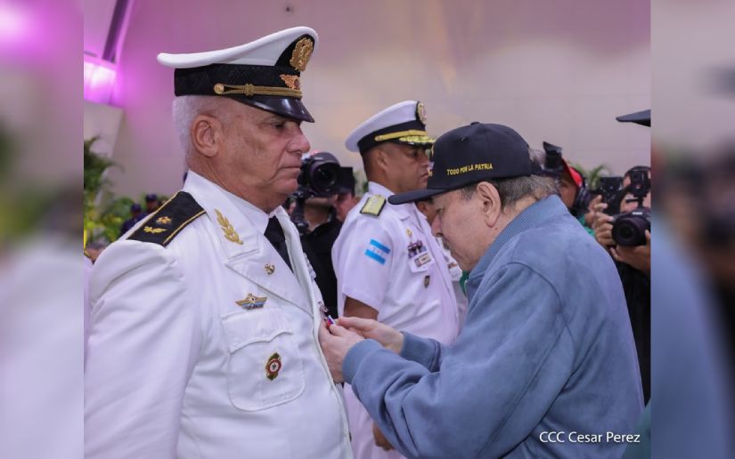 La Embajadora de Cuba en Nicaragua, compañera Iliana Fonseca Lorente, a través de una publicación en la red social X destacó que el Copresidente de Nicaragua, Comandante Daniel Ortega, condecoró al jefe de la Marina de Guerra Revolucionaria de Cuba, Contralmirante Luis Reyes, con la Medalla de Honor al Mérito Naval en primera clase.