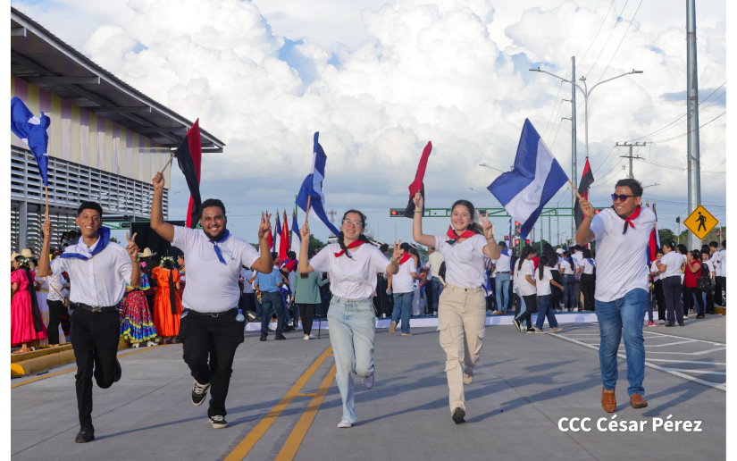 MANAGUA, 15 sep (Xinhua) -- Con música, baile colorido y un fuerte sentimiento patriótico, la juventud nicaragüense inauguró el domingo el tramo 1 de la Pista Héroes y Mártires de la Insurrección en Managua, una moderna vía que va desde el Paso a Desnivel Nejapa hasta la Colonia El Periodista, en el Distrito III de la capital.