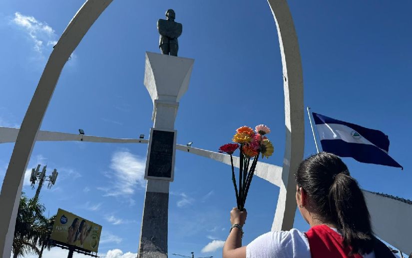 Reporte fotográfico de la entrega de flores de patio, conmemorando el paso a la inmortalidad del Héroe y Poeta Nacional Rigoberto López Pérez, acompañado de presentaciones de poesía, música en vivo y bailes folclóricos, la cual se realizó el día de hoy en el la rotonda que lleva su nombre en Managua.