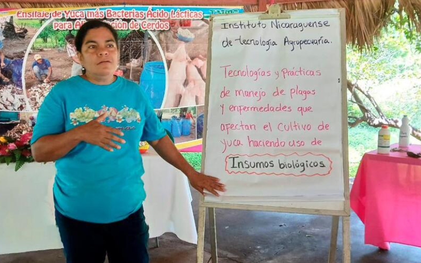 El INTA realizó en el Banco Comunitario de Semillas de la Comunidad Santa Rosa, Municipio de Quezalguaque, León, Encuentro con Productores, en donde se presentaron tecnologías y prácticas para el control de plagas y enfermedades en el cultivo de yuca, haciendo uso de bioinsumos.