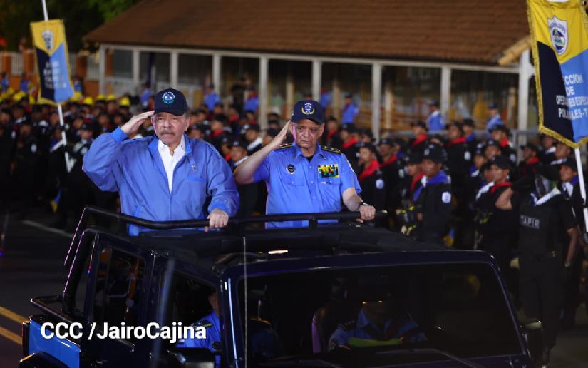 “Y hoy en este 46 aniversario, una vez más felicitamos a los hermanos de la Policía. Felicitamos a los compañeros y compañeras que hoy van a desfilar. Son 900 mujeres las que van a desfilar aquí con la Policía Nacional, 900 mujeres. Y varones son 1 mil 200 varones, o sea, un contingente que dice mucho de cómo aquí la mujer camina a la par de los hombres para defender la seguridad del pueblo y la seguridad ciudadana. Que viva la Policía Nacional, que viva el 46 aniversario de la Policía Nacional, Sandino Vive, Patria Libre”, expresó finalmente el Copresidente.
