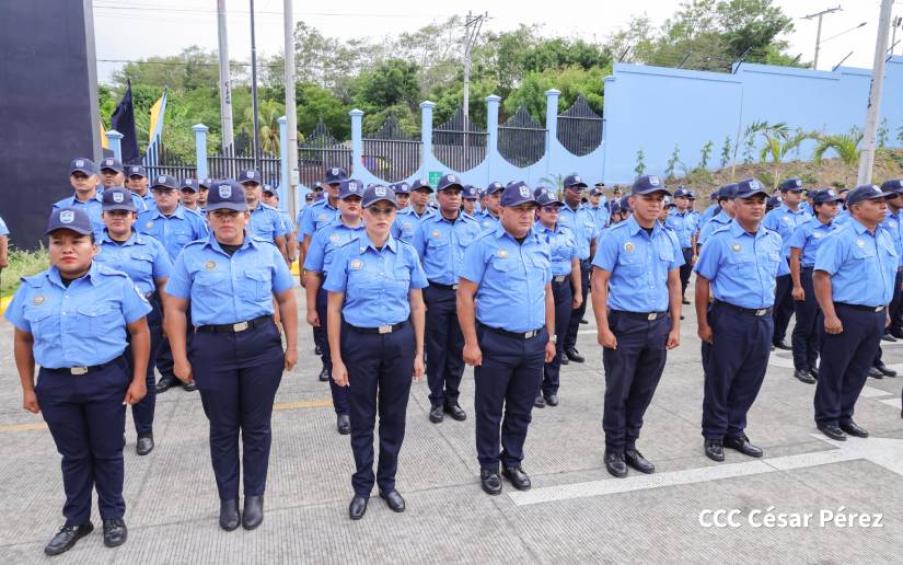 “Promesa de Ley: Prometes ante Dios, ante la patria, ante el pueblo y las familias nicaragüense, ante nuestros Héroes y Mártires, respetar la Constitución, las Leyes, los derechos y las libertades del pueblo y cumplir fielmente las misiones encomendadas bajo los principios fundamentales de actuación de la Policía Nacional, para defender la paz, la seguridad y la estabilidad de nuestra nación, revestidos por el lema de ¡Honor, Seguridad, Servicio! Sí así lo haces, que la patria y el pueblo lo reconozcan, si no que ellos te lo demanden. Quedan juramentados”, señaló el Primer Comisionado General, Francisco Díaz Madriz.
