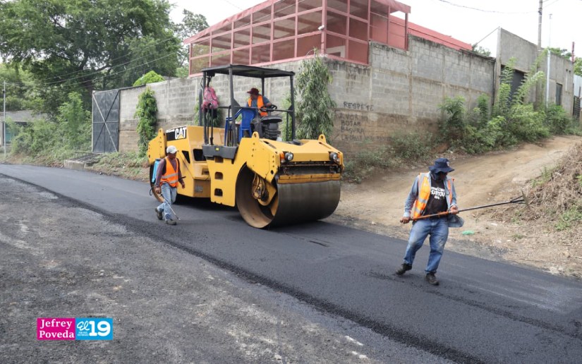 La alcaldesa de Managua, Reyna Rueda, realizó una visita de supervisión en el barrio Santa Catalina, ubicado en el distrito tres de Managua, para constatar el avance en las horas de recarpeteo asfáltico de 6 cuadras de calles.