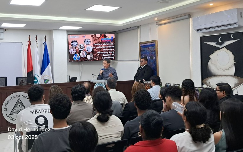 La comunidad estudiantil de la Universidad Americana (UAM) participó este viernes en la conferencia sobre Octubre Victorioso, una hazaña que marcó el camino hacia el triunfo definitivo de la Revolución Popular Sandinista en contra de la Dictadura Somocista.