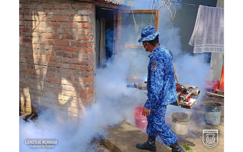El Ejército de Nicaragua consecuente con el lema de que “Somos el Pueblo mismo uniformado, trabajando en su propio beneficio”, del 26 de septiembre al 3 de octubre de 2025, a través del Segundo Batallón de Tropas Navales, en coordinación con el Ministerio de Salud (MINSA), participó en jornada de abatización y fumigación, en diferentes barrios de la comunidad El Tamarindo, municipio de La Paz Centro, departamento de León, con el objetivo de eliminar criaderos de mosquitos transmisores del dengue y otras enfermedades.