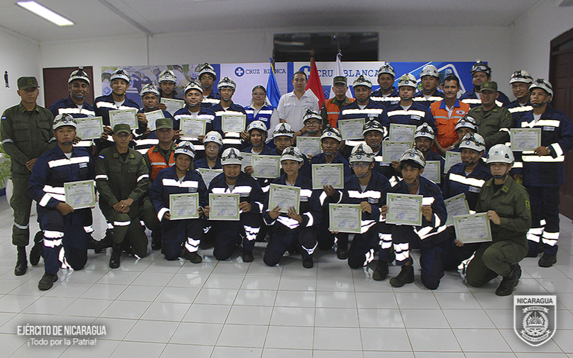El Ejército de Nicaragua consecuente con el lema de que “Somos el Pueblo mismo uniformado trabajando en su propio beneficio”, del 8 de septiembre al 5 de octubre de 2025, a través del Estado Mayor de la Defensa Civil y la Unidad Humanitaria y de Rescate “Comandante William Ramírez Solórzano”, en coordinación con la Cruz Blanca, participaron en capacitación a 30 socorristas voluntarios, en la ciudad de Managua, departamento de Managua, con el objetivo de fortalecer las capacidades institucionales para resguardar a la población ante situaciones de emergencia y/o desastres en todo el territorio nacional.