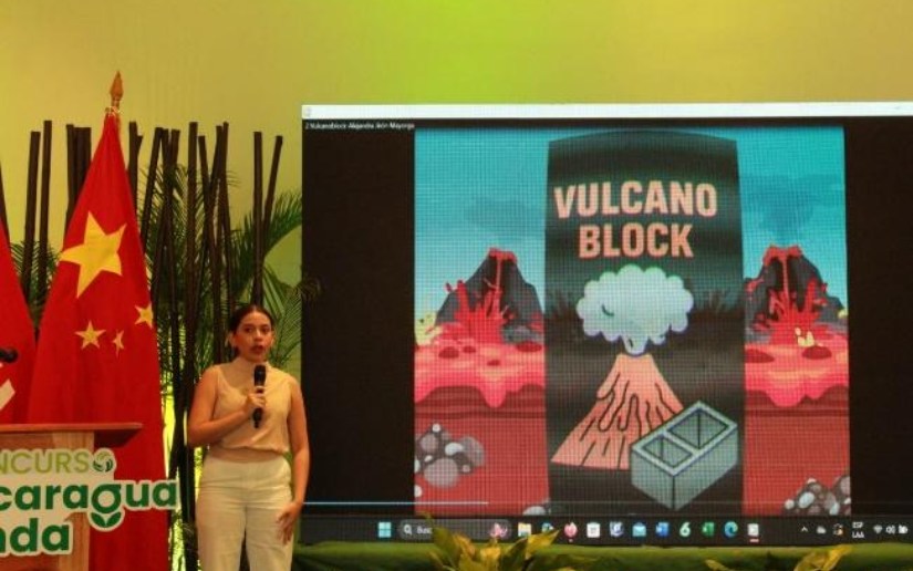 Alejandra Fernanda Jirón Mayorga, con el proyecto “VulcanoBlock (producción de bloques a partir de desechos orgánicos y materiales naturales, como arcilla, ceniza volcánica, arena y cal)”.