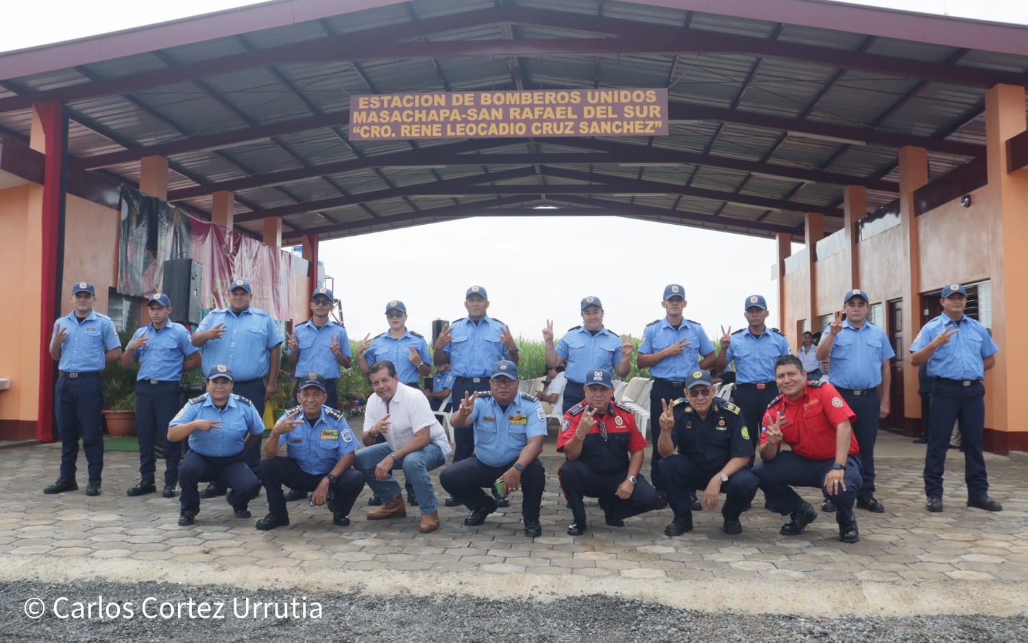 Las familias de Nicaragua celebraron este martes un nuevo logro que fortalece la seguridad del pueblo con la inauguración de la estación de bomberos número 230, ubicada en la comunidad de Masachapa, San Rafael del Sur, del departamento de Managua, la cual lleva el nombre del "Cro. René Leocadio Cruz Sánchez".