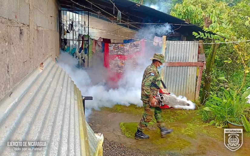 El Ejército de Nicaragua consecuente con el lema de que “Somos el Pueblo mismo uniformado trabajando en su propio beneficio”, el 10 y 11 de octubre de 2025, a través del 5 Comando Militar Regional, en coordinación con el Ministerio de Salud (MINSA), participó en jornada de fumigación en diferentes barrios del municipio de Nueva Guinea, Región Autónoma de la Costa Caribe Sur, con el objetivo de eliminar criaderos de mosquitos transmisores del dengue y otras enfermedades.