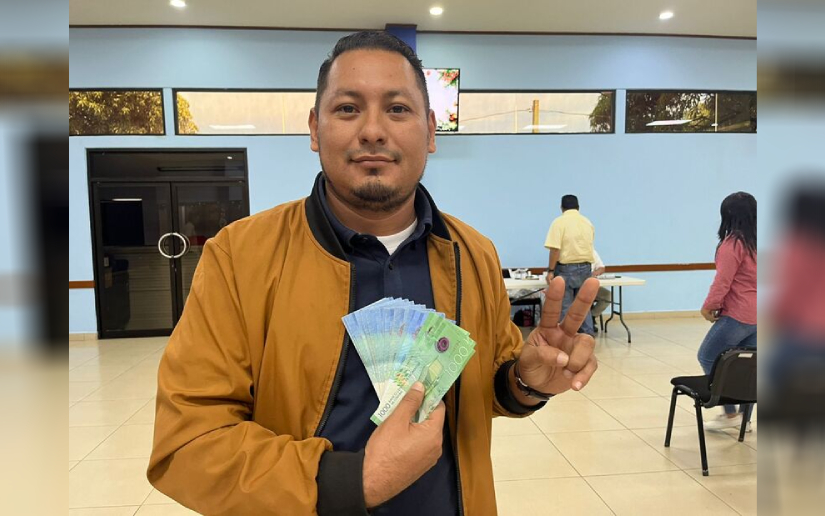 Álvaro García, trabajador de la instituición rectora de la educación en Nicaragua, se mostró contento y feliz por recibir su pago adelantado, el que también le permite, con sus compras, contribuir con la economía de Nicaragua.