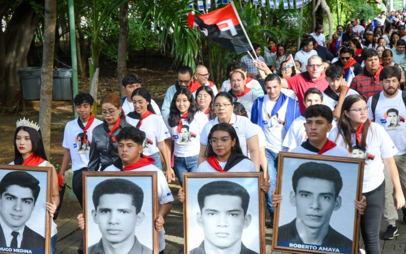 La Juventud Universitaria ratificó el compromiso de seguirse formando profesionalmente como soñaron nuestros Jóvenes Héroes y Mártires de la Revolución, reafirmando el compromiso en defender la Paz, las Victorias Educativas y Logros alcanzados por nuestro Buen Gobierno Sandinista para el Bienestar de las Familias.