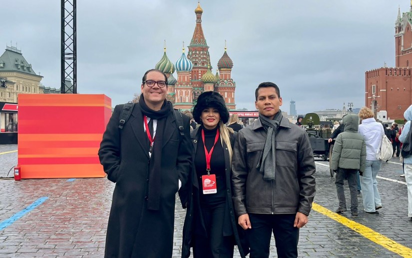Así mismo la Delegación realizó depósito de ofrenda floral desde la Plaza Roja, en el Monumento de Stalin y de Lenin, en señal de respeto al Legado de estos Héroes de la Hermana Federación de Rusia.