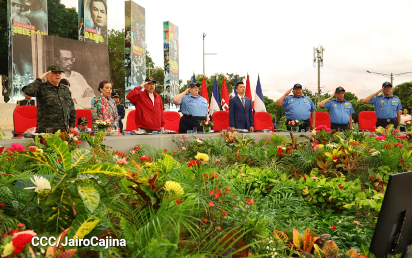 Los Copresidentes de Nicaragua, Comandante Daniel Ortega Saavedra y Compañera Rosario Murillo, encabezan el acto central de conmemoración del 46 aniversario de fundación del Ministerio del Interior, MINT.