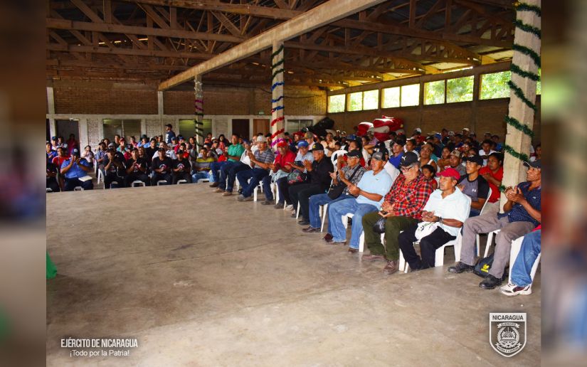El Ejército de Nicaragua consecuente con el lema de que “Somos el Pueblo mismo uniformado, trabajando en su propio beneficio”, el 9 de noviembre de 2025, a través del jefe del 1 Comando Militar Regional Coronel Inf. DEM Eduardo Antonio Rueda, participó en reuniones con 656 productores de café, ganaderos, transportistas y comerciantes de los municipios de Quilalí, Wiwilí, departamento de Nueva Segovia y de los municipios de San Juan de Río Coco y Telpaneca, departamento de Madriz, con el objetivo de escuchar sus planteamientos relacionados al fortalecimiento del Plan Permanente de Seguridad en el Campo, lucha contra el abigeato.
