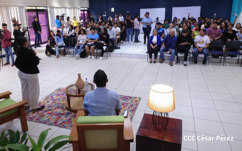 En este encuentro estuvieron presentes el Compañero Daniel Edmundo Ortega, Coordinador de Medios del Consejo de Comunicación y Ciudadanía; Erling Torrez, secretaria general de la universidad Casimiro Sotelo; Oscar Pérez, viceministro de la juventud; y los expositores Guadalupe Padilla y Edwin Madrigal Bustillo.