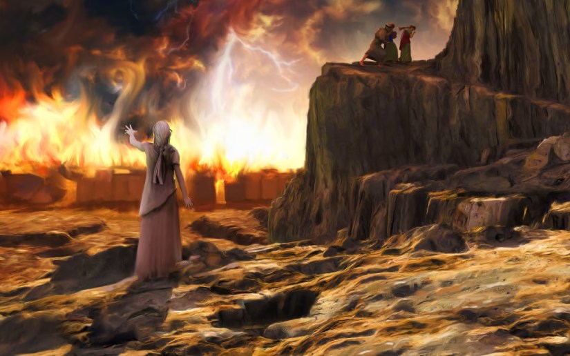 La historia original que tenemos de Sodoma y Gomorra en su parte final es cuando el Señor, no pudiendo ya soportar las peores de las acciones de sus hombres y de sus mujeres, es cuando le dice a Lot y a su familia que huyan, porque esas ciudades estaban a punto de ser destruidas. “Escapa por tu vida”, dijo el Señor, “no mires tras de ti escapa al monte, no sea que perezcas” (Génesis 19:17).