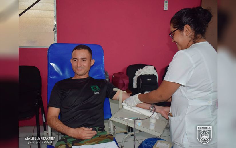 El Ejército de Nicaragua consecuente con el lema de que “Somos el Pueblo mismo uniformado trabajando en su propio beneficio”, del 13 al 21 de noviembre de 2025, a través del Destacamento Militar Sur, en coordinación con el Ministerio de Salud (MINSA), participó en jornada de donación voluntaria de sangre en el hospital departamental “Dr. Luis Felipe Moncada” y en el centro de salud “Miguel Antonio López Balladares”, de la comunidad Laurel Galán, municipio de San Carlos, departamento de Río San Juan.